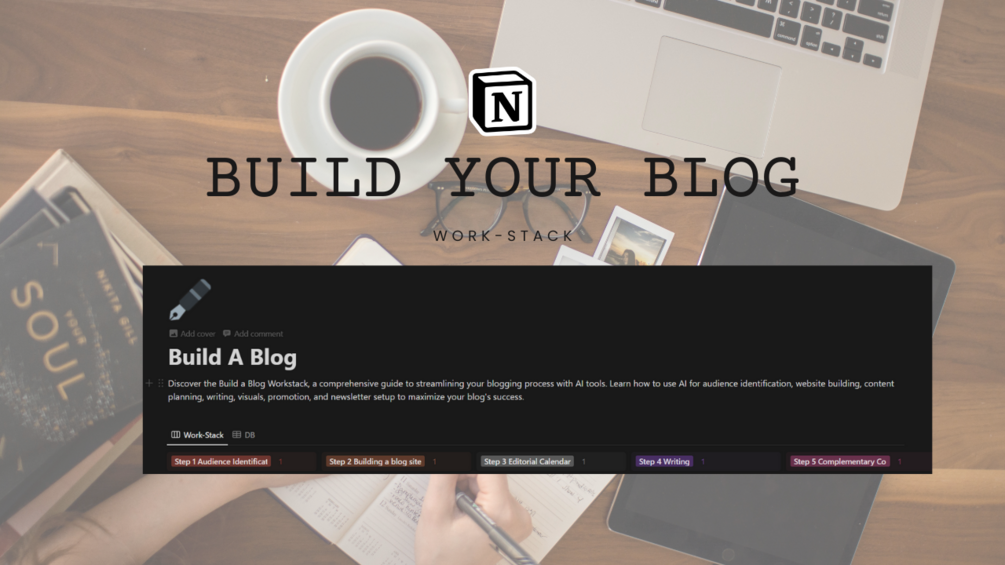 Discover the Build a Blog Workstack, a comprehensive guide to streamlining your blogging process with AI tools. Learn how to use AI for audience identification, website building, content planning, writing, visuals, promotion, and newsletter setup to maximize your blog's success.